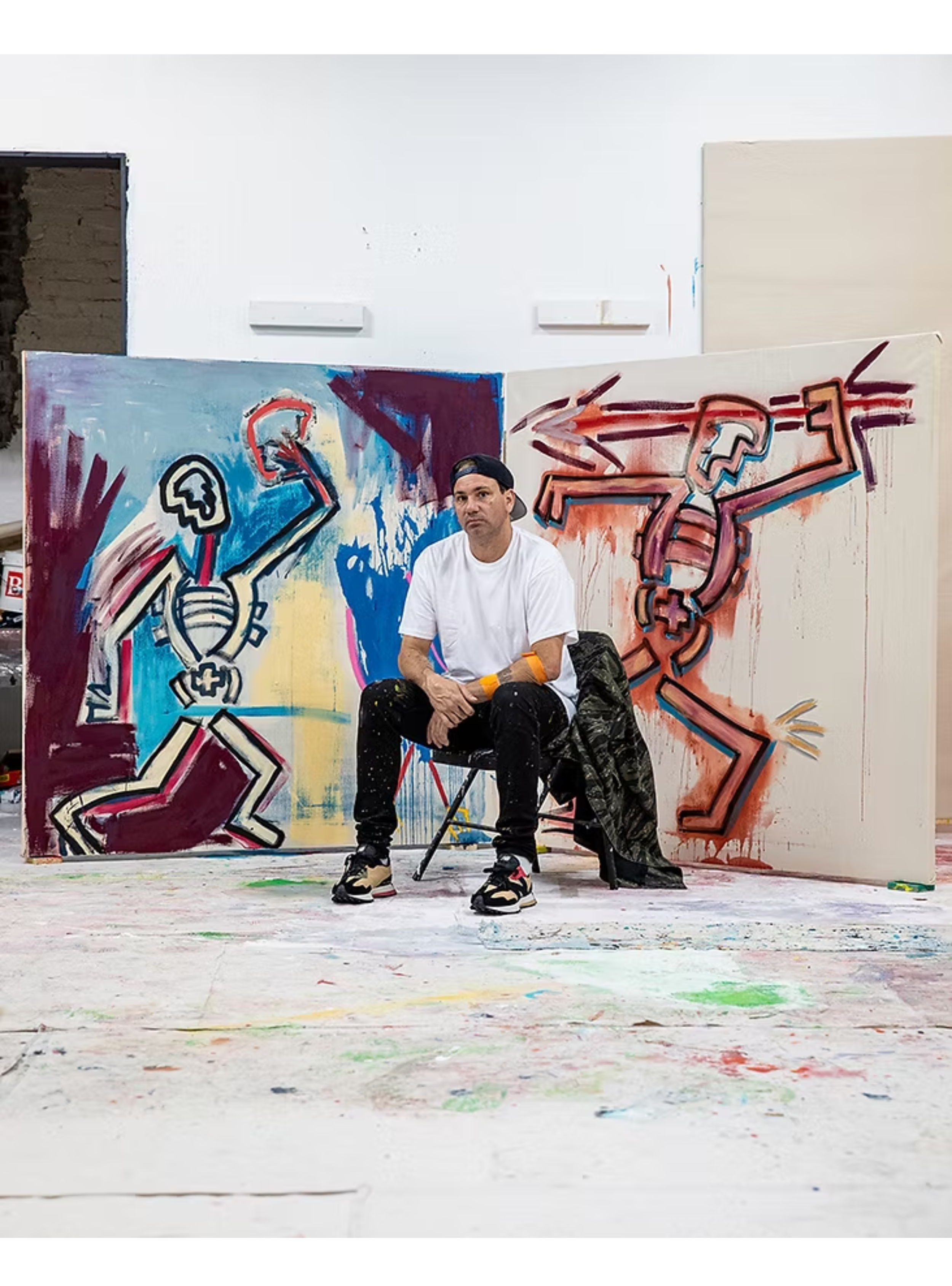 Danny Minnick is a Neo-Expressionist painter, professional skateboarder, filmmaker, and actor known for his bold, energetic style. Born in Seattle and based between Los Angeles and New York, he brings a raw, instinctive approach to his large-scale canvases. His signature figure, Character—a skeleton with a plus sign on its torso—symbolizes the positive energy he aims to spread worldwide.