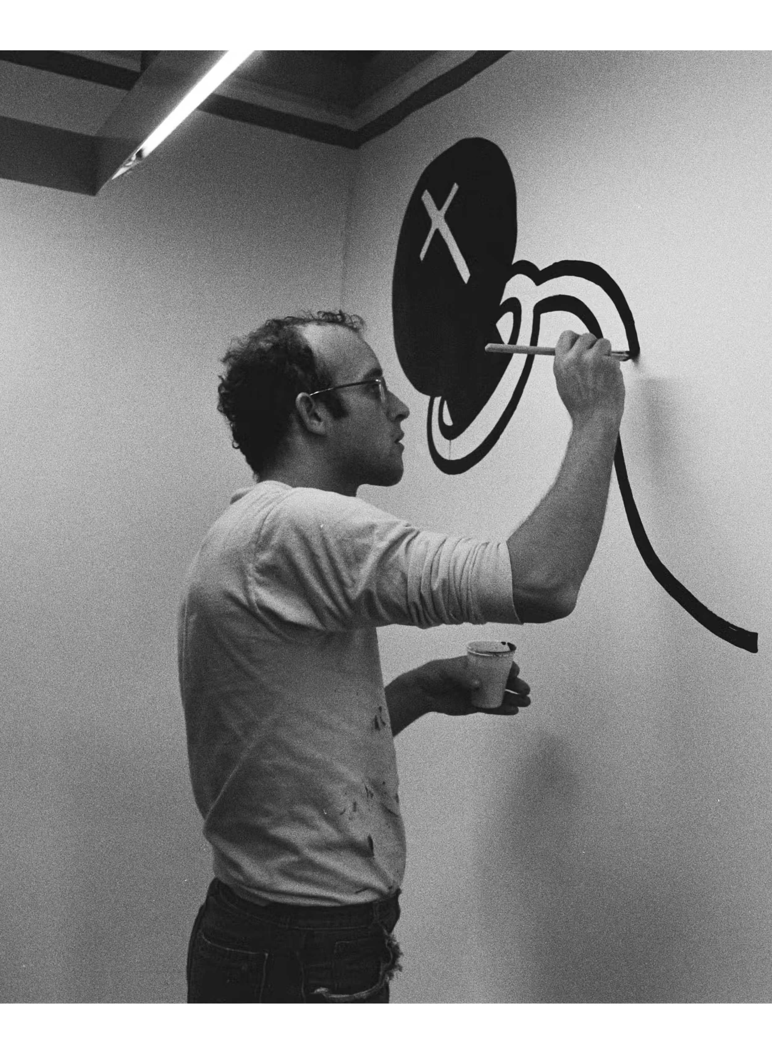 Keith Haring (1958–1990) was a renowned American artist whose bold, graphic imagery became a signature of the 1980s art scene. Raised in Pennsylvania, Haring developed an early love for drawing, influenced by pop culture figures like Dr. Seuss and Walt Disney. After studying at the Ivy School of Professional Art and the School of Visual Arts in New York, he found his place in the vibrant downtown art community, where he formed close relationships with artists like Jean-Michel Basquiat.
