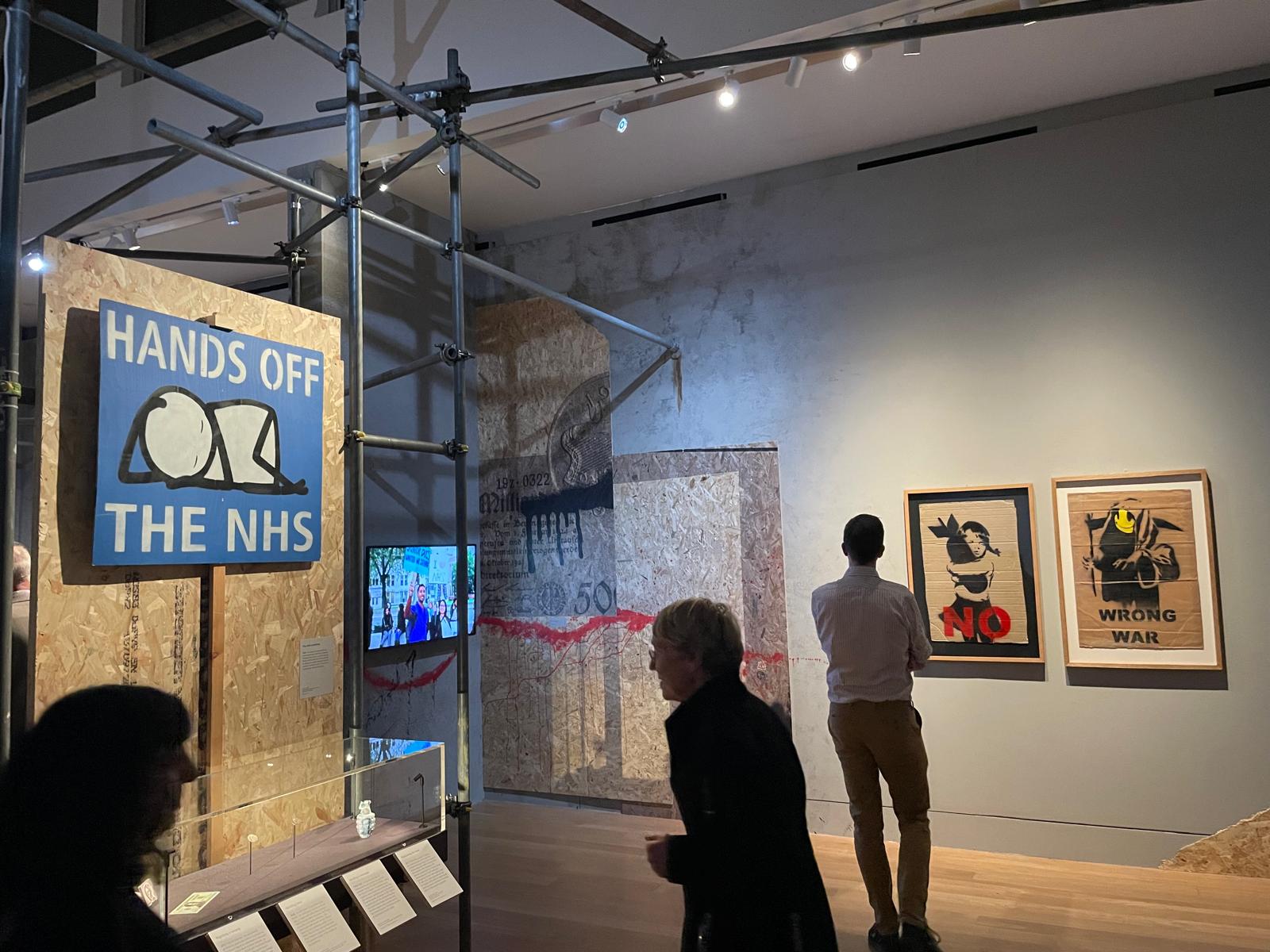 Set across three rooms, the atmosphere was gritty and immersive scaffold-style supports, bold graphics and reclaimed materials gave the space a raw edge that matched the defiant spirit of the objects. The exhibition asked visitors to consider: what happens when we alter money, and what does that alteration mean for authority, value and freedom?