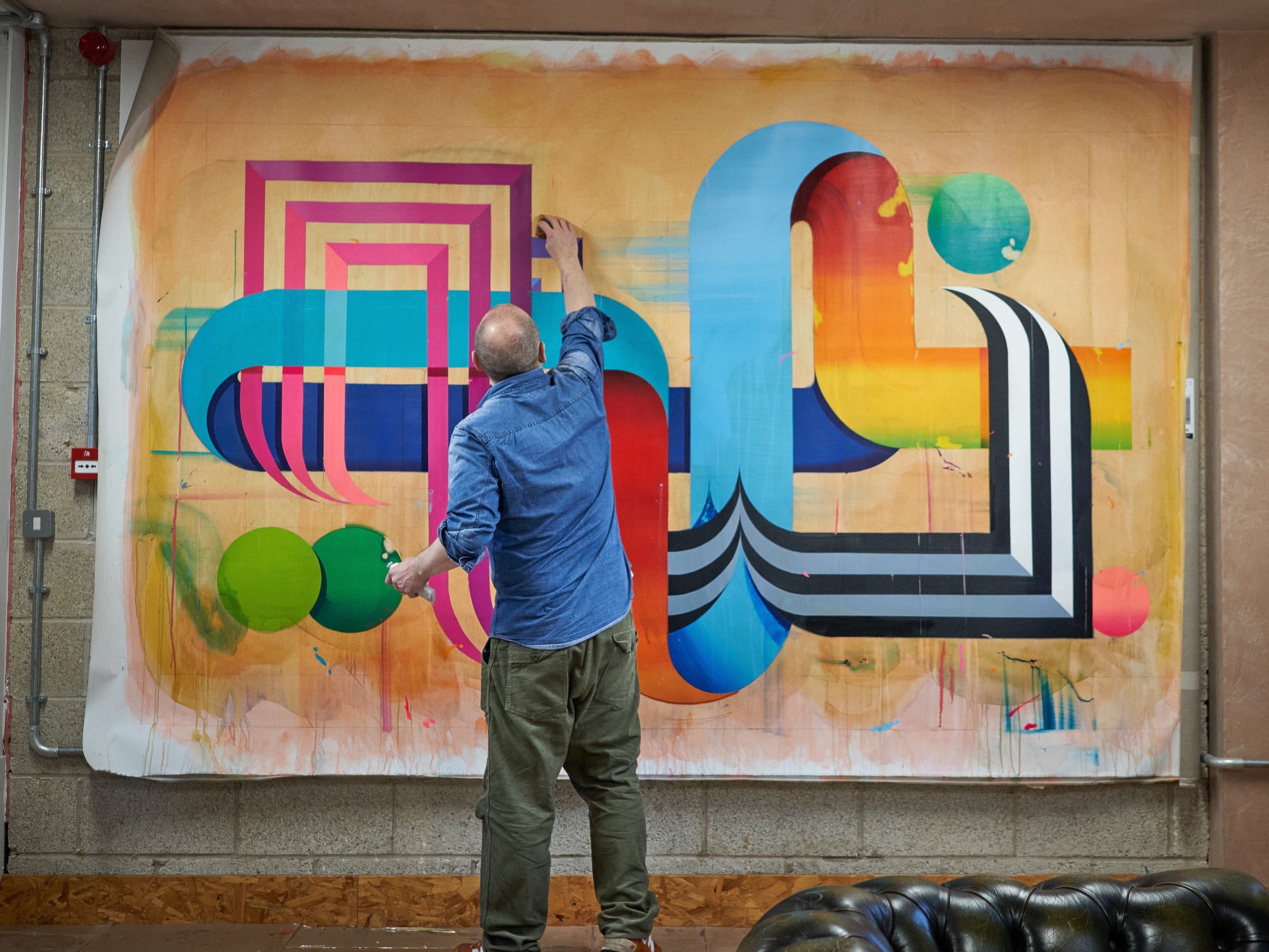The concept for Variations on a Theme traced back to the 2020 lockdown. Confined to his home, Grindrod established a makeshift studio and focused on creating small-scale paintings. As restrictions eased, he felt compelled to explore possibilities in scale, pushing his designs further.